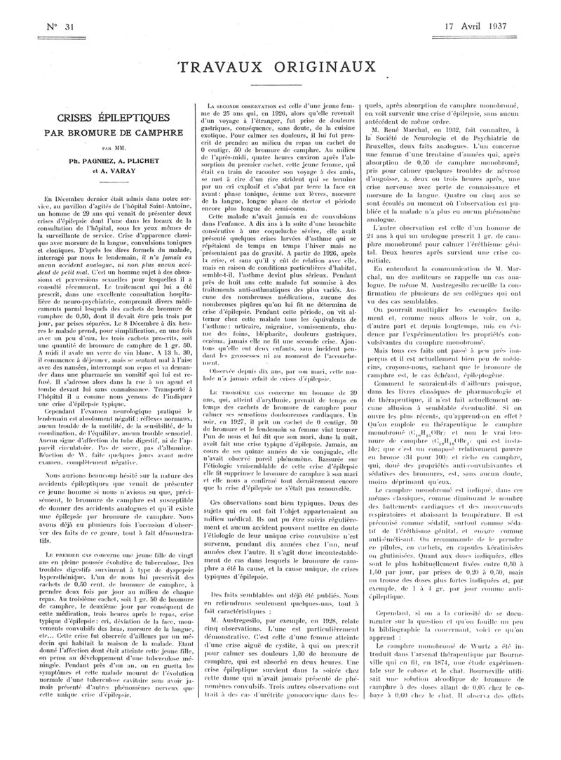 1937, Articles originaux. -
