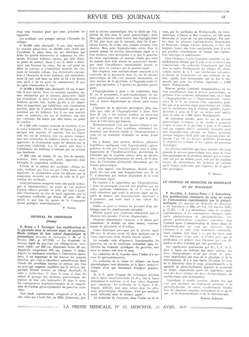 1937, Revue des journaux. -