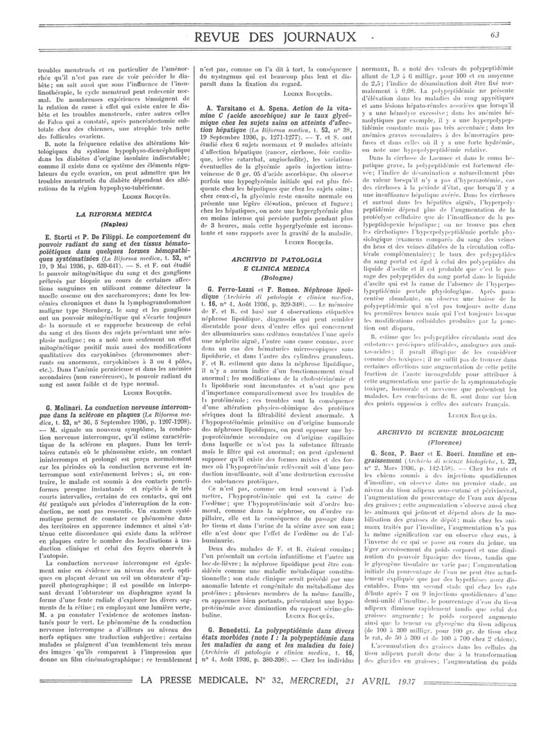 1937, Revue des journaux. -