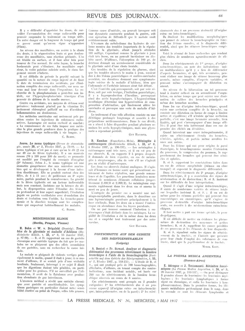 1937, Revue des journaux. -