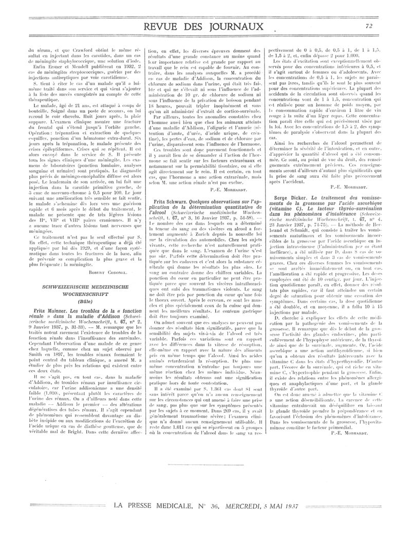 1937, Revue des journaux. -