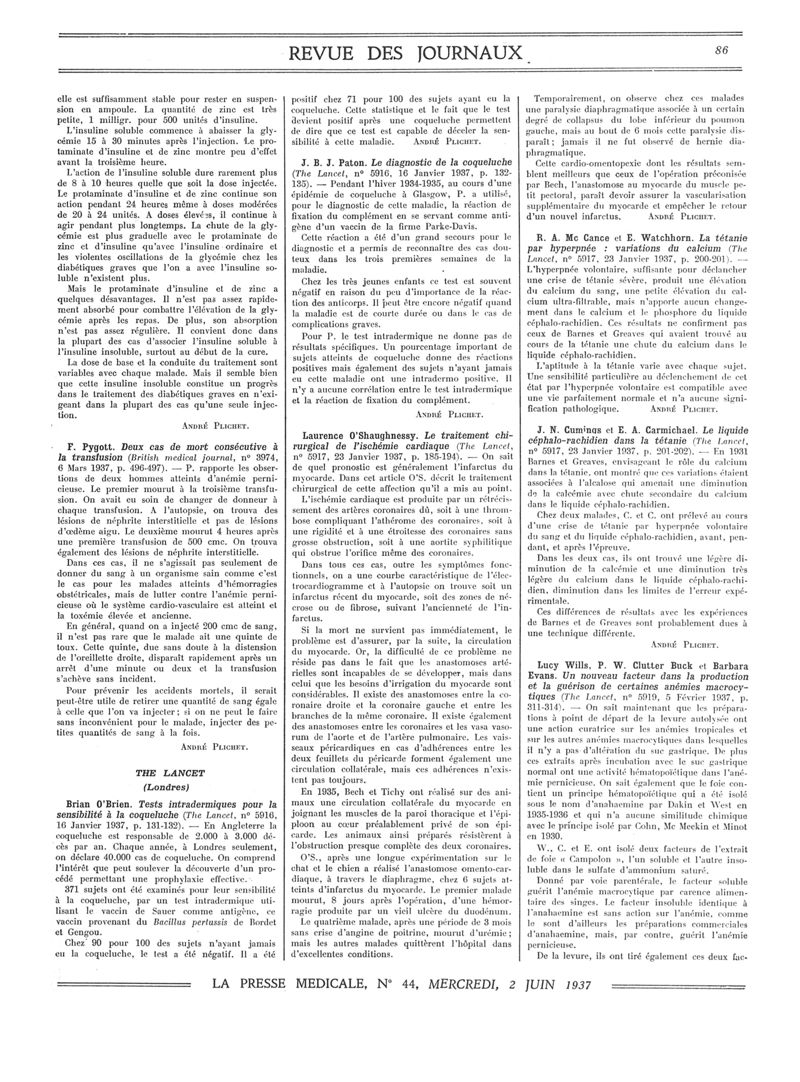 1937, Revue des journaux. -