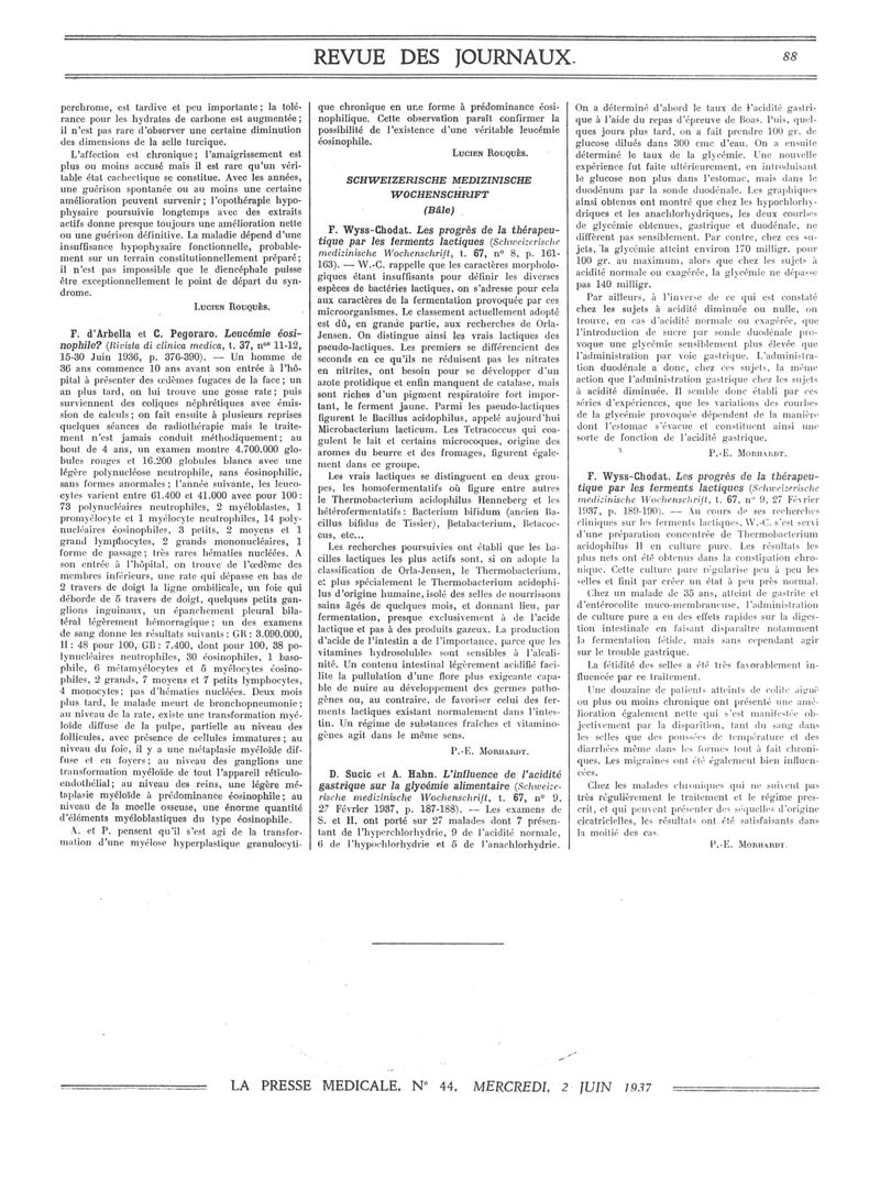 1937, Revue des journaux. -