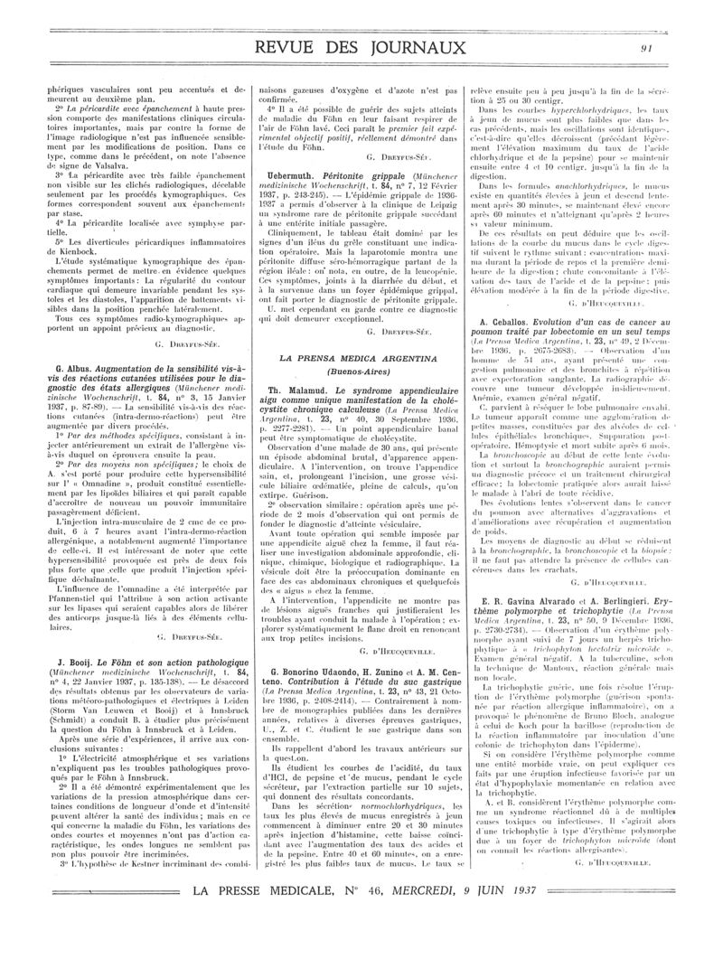 1937, Revue des journaux. -