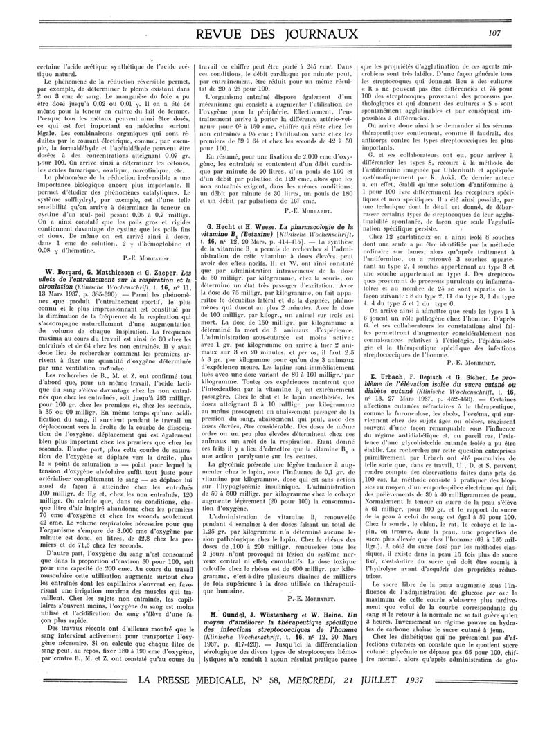 1937, Revue des journaux. -
