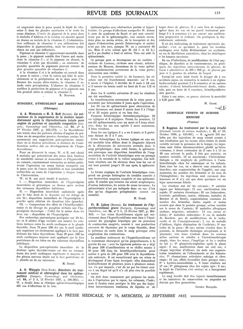 1937, Revue des journaux. -