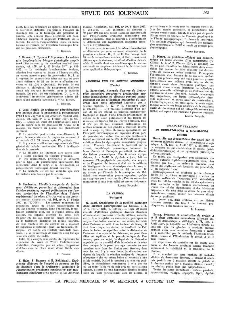 1937, Revue des journaux. -