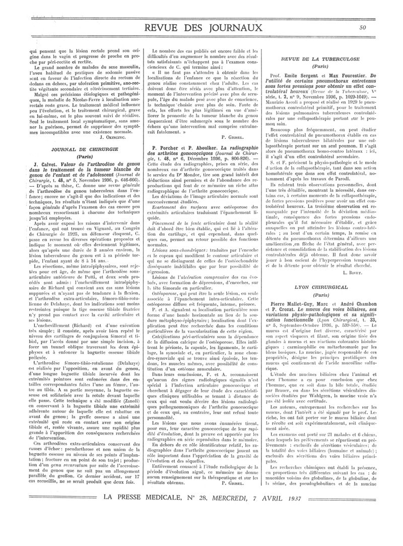 1937, Revue des journaux. -
