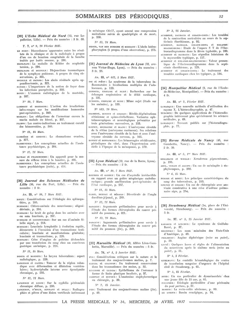 1937, Sommaires des périodiques. -