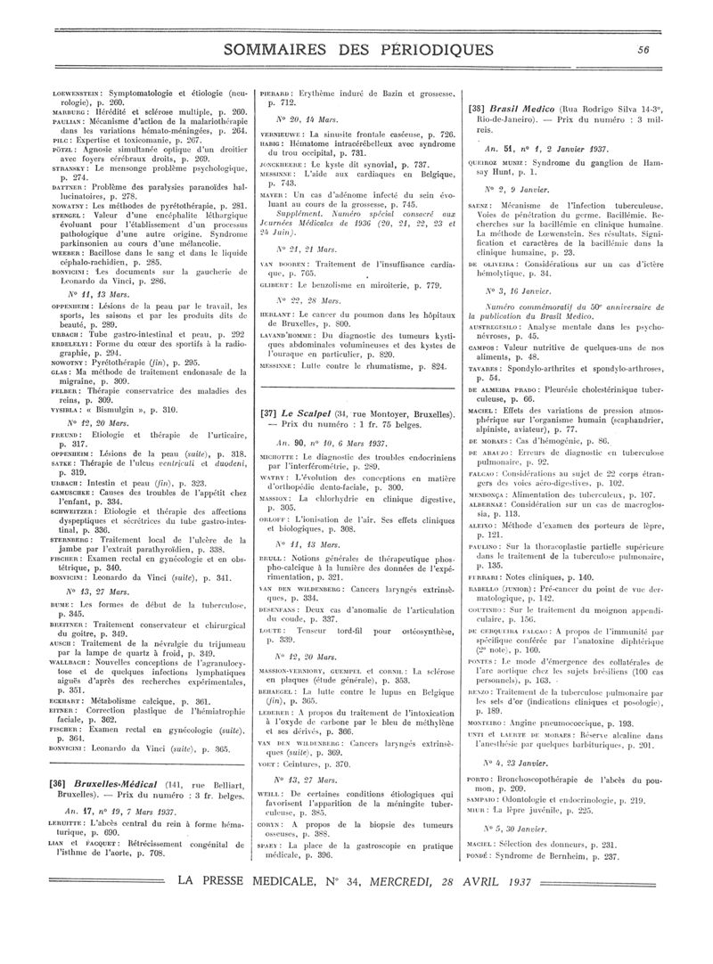 1937, Sommaires des périodiques. -
