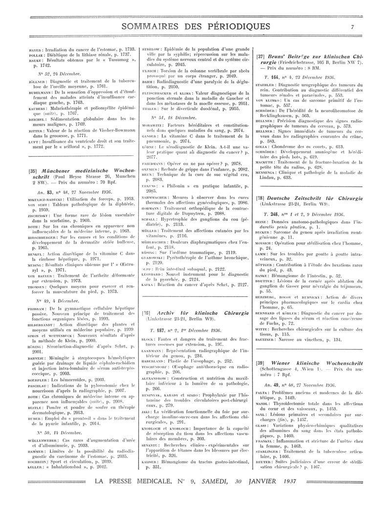 1937, Sommaires des périodiques. -