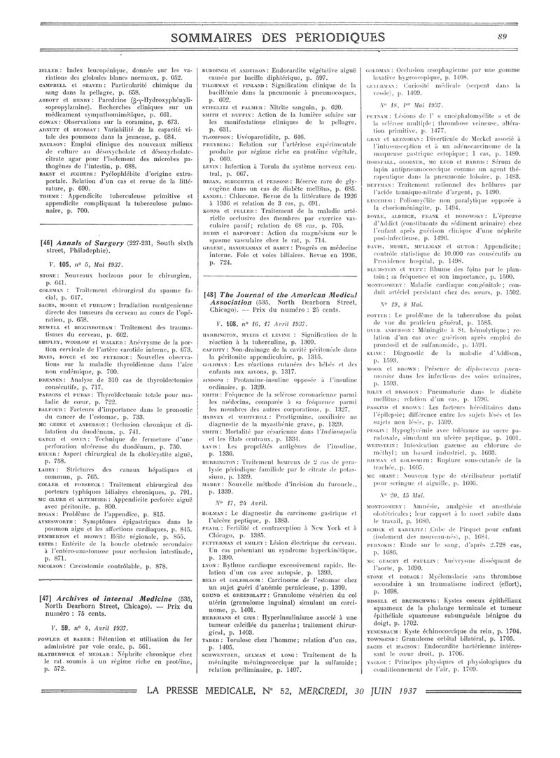 1937, Sommaires des périodiques. -
