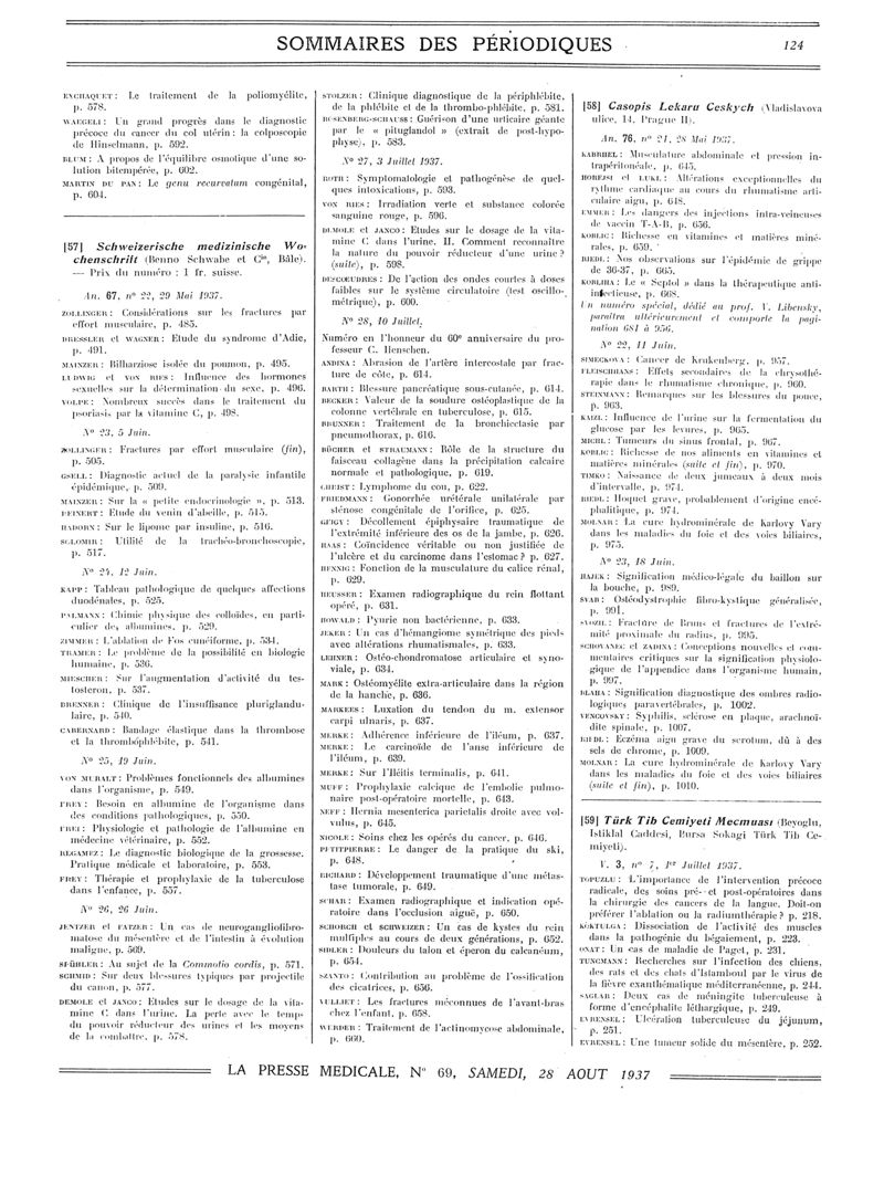 1937, Sommaires des périodiques. -