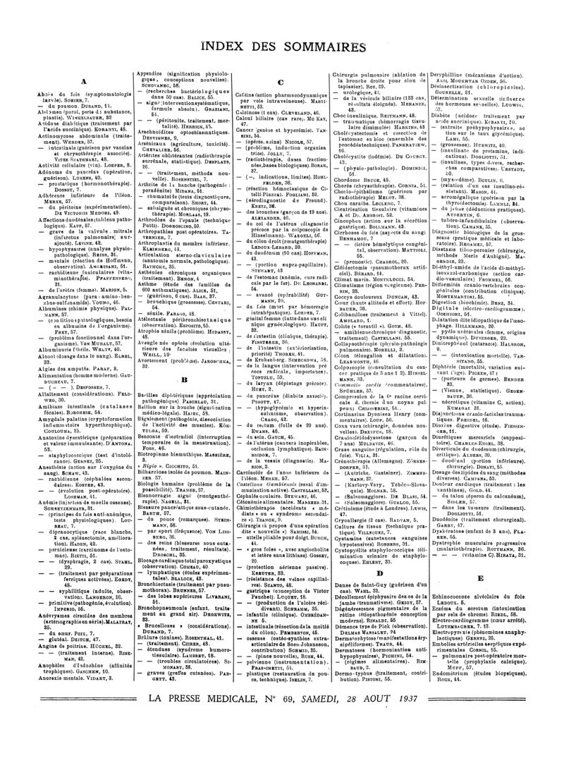 1937, Sommaires des périodiques. -
