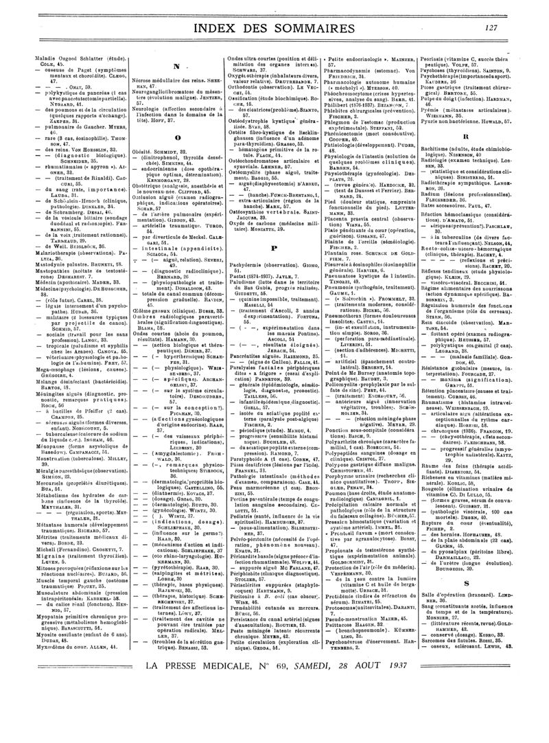 1937, Sommaires des périodiques. -