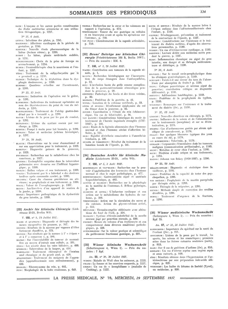 1937, Sommaires des périodiques. -