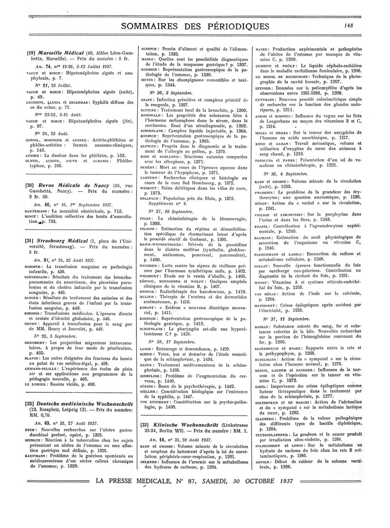 1937, Sommaires des périodiques. -