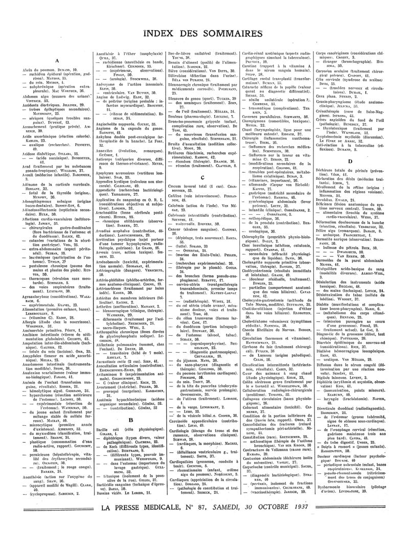 1937, Sommaires des périodiques. -