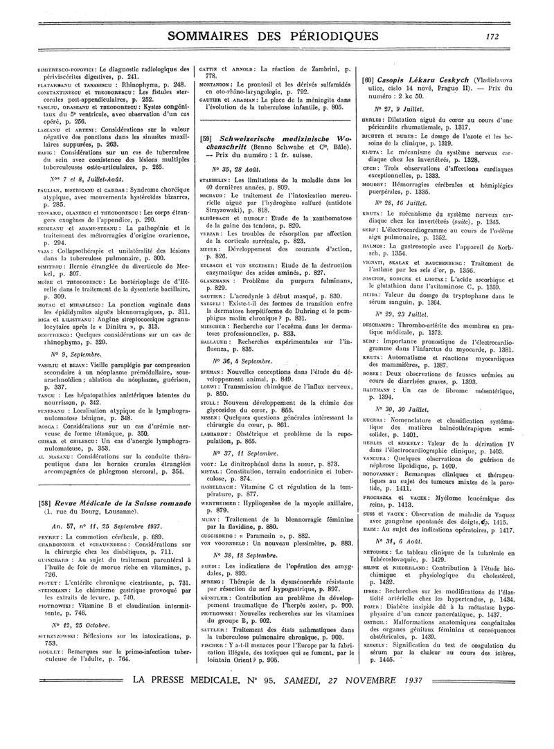 1937, Sommaires des périodiques. -
