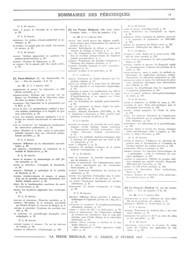 1937, Sommaires des périodiques. -