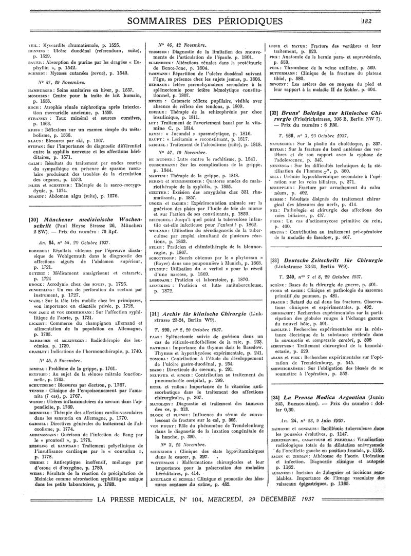 1937, Sommaires des périodiques. -