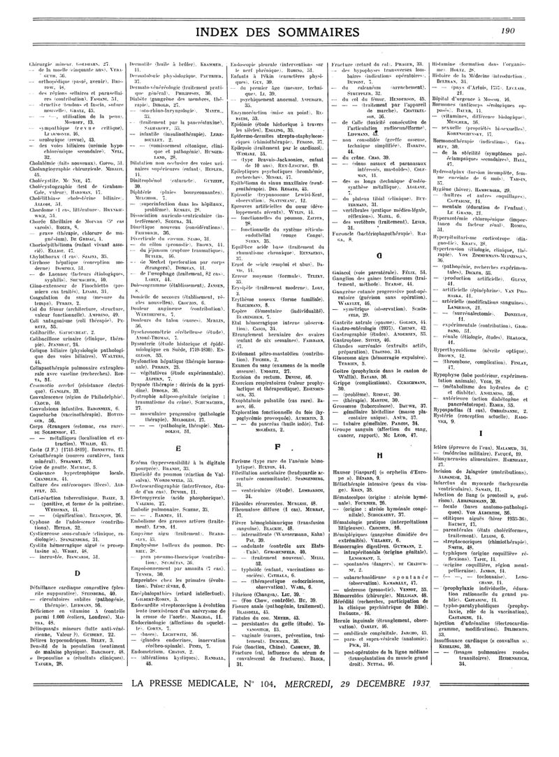 1937, Sommaires des périodiques. -