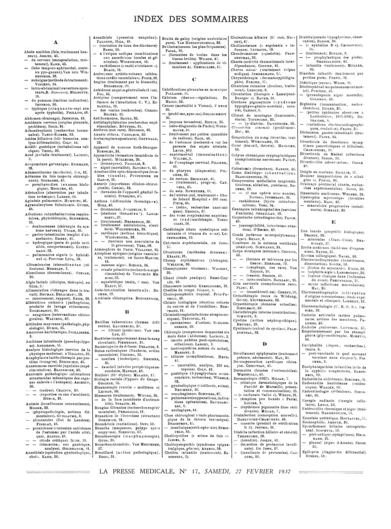 1937, Sommaires des périodiques. -