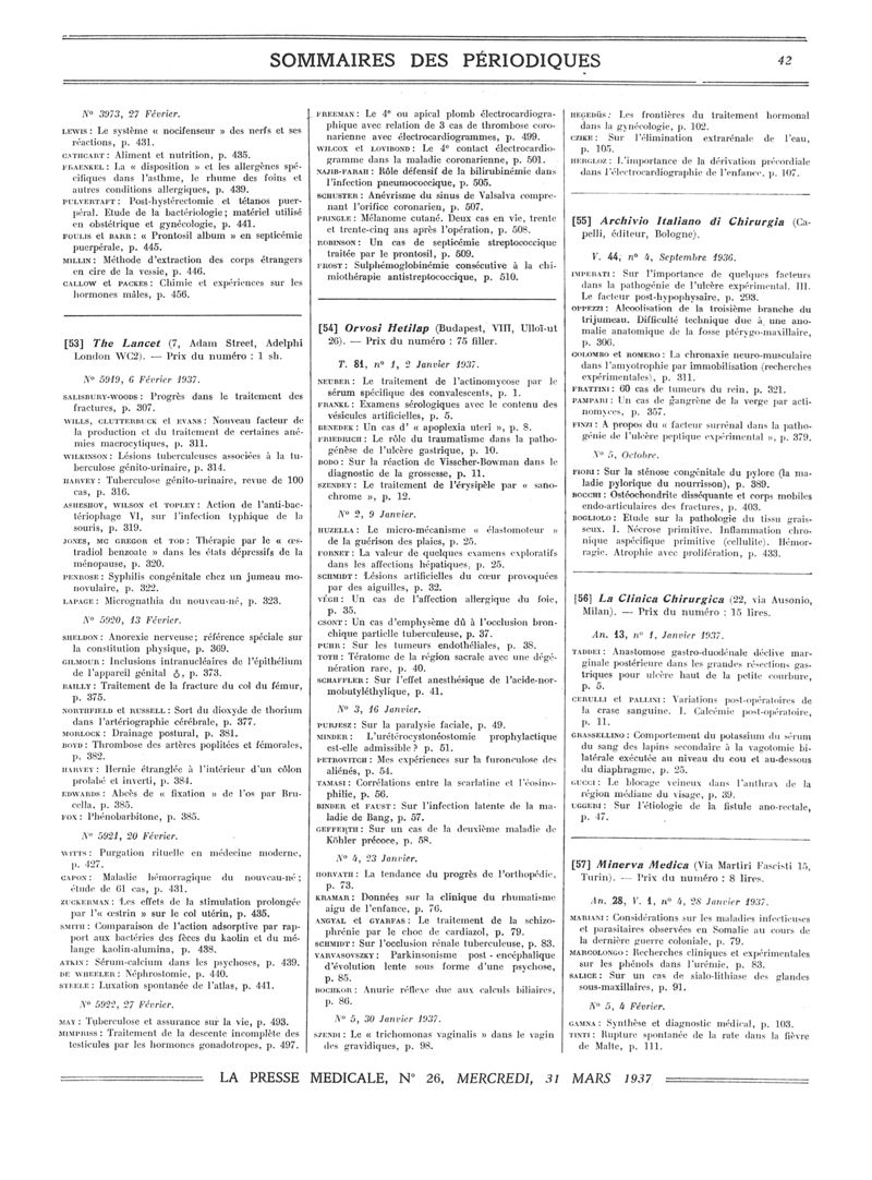 1937, Sommaires des périodiques. -