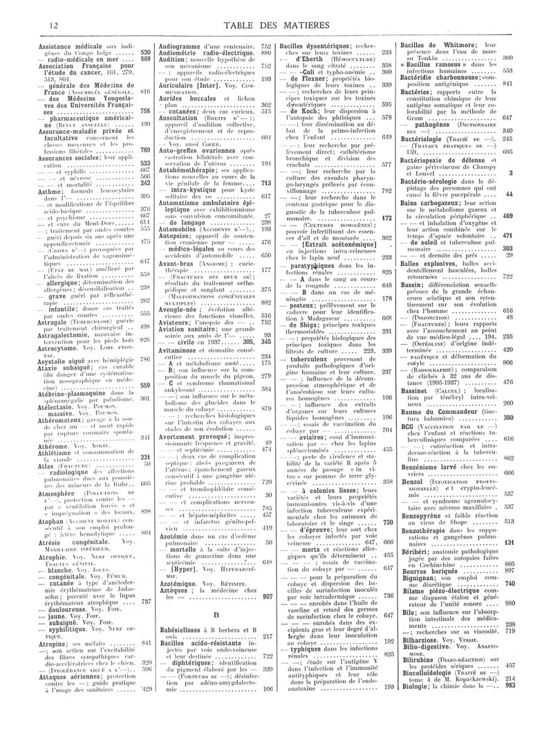 1937, Volume de tables. -
