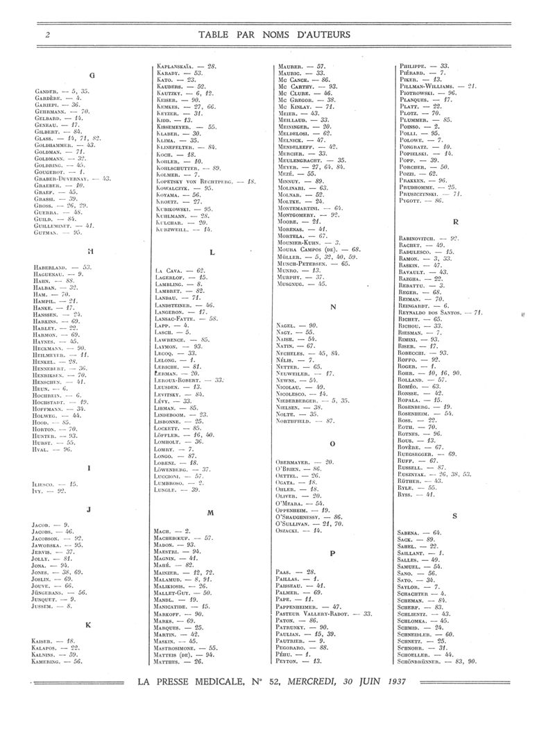 1937, Volume de tables. -