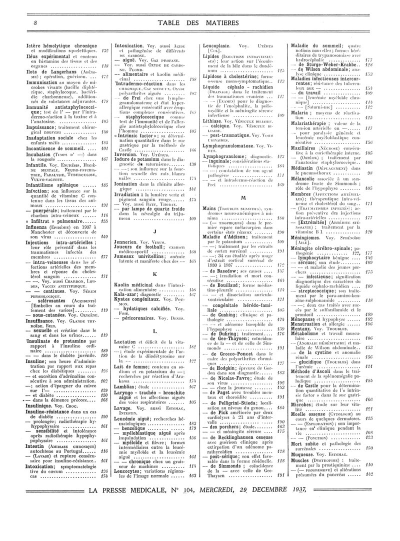 1937, Volume de tables. -