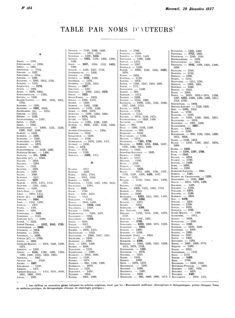 1937, Volume de tables. -