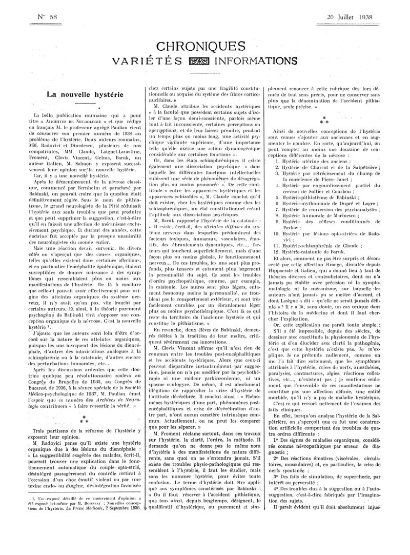 1938, Articles originaux. -