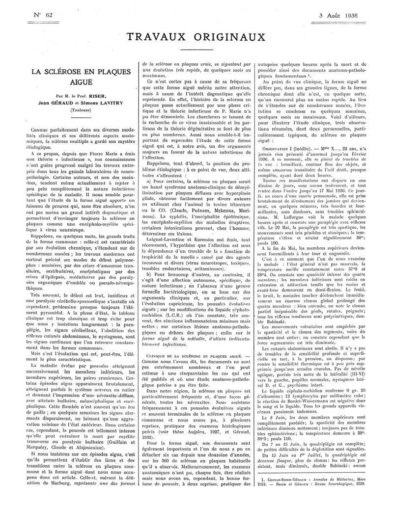1938, Articles originaux. -