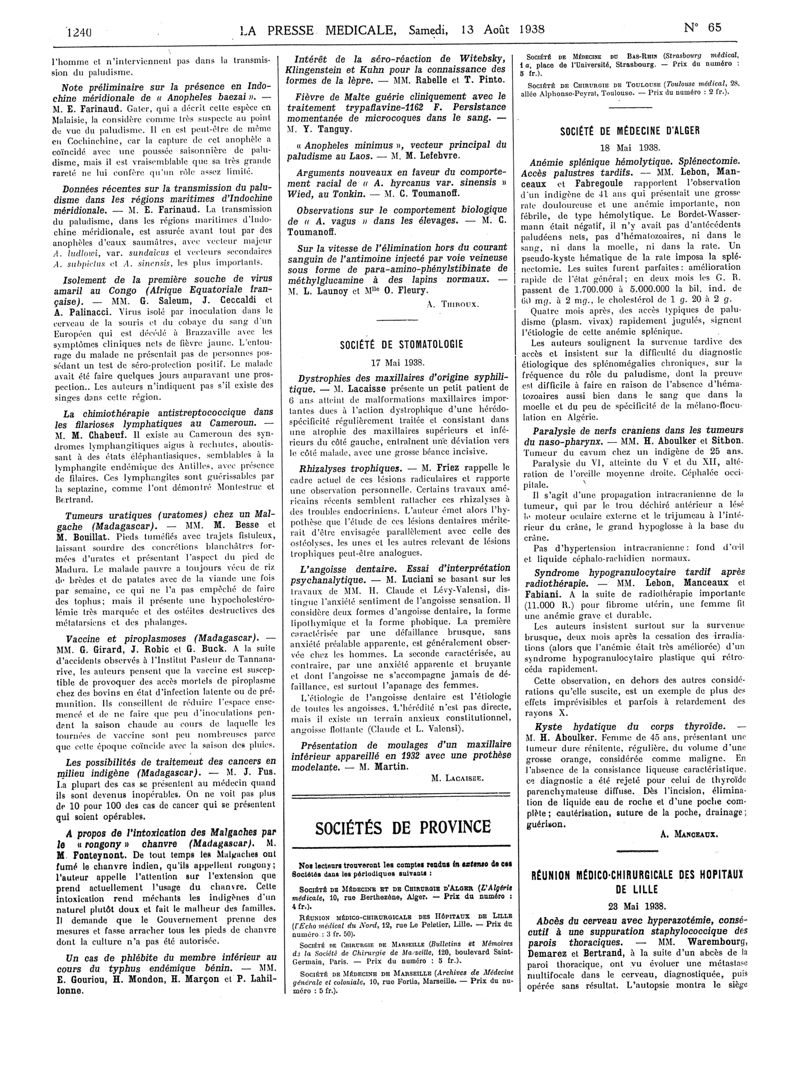 1938, Articles originaux. -