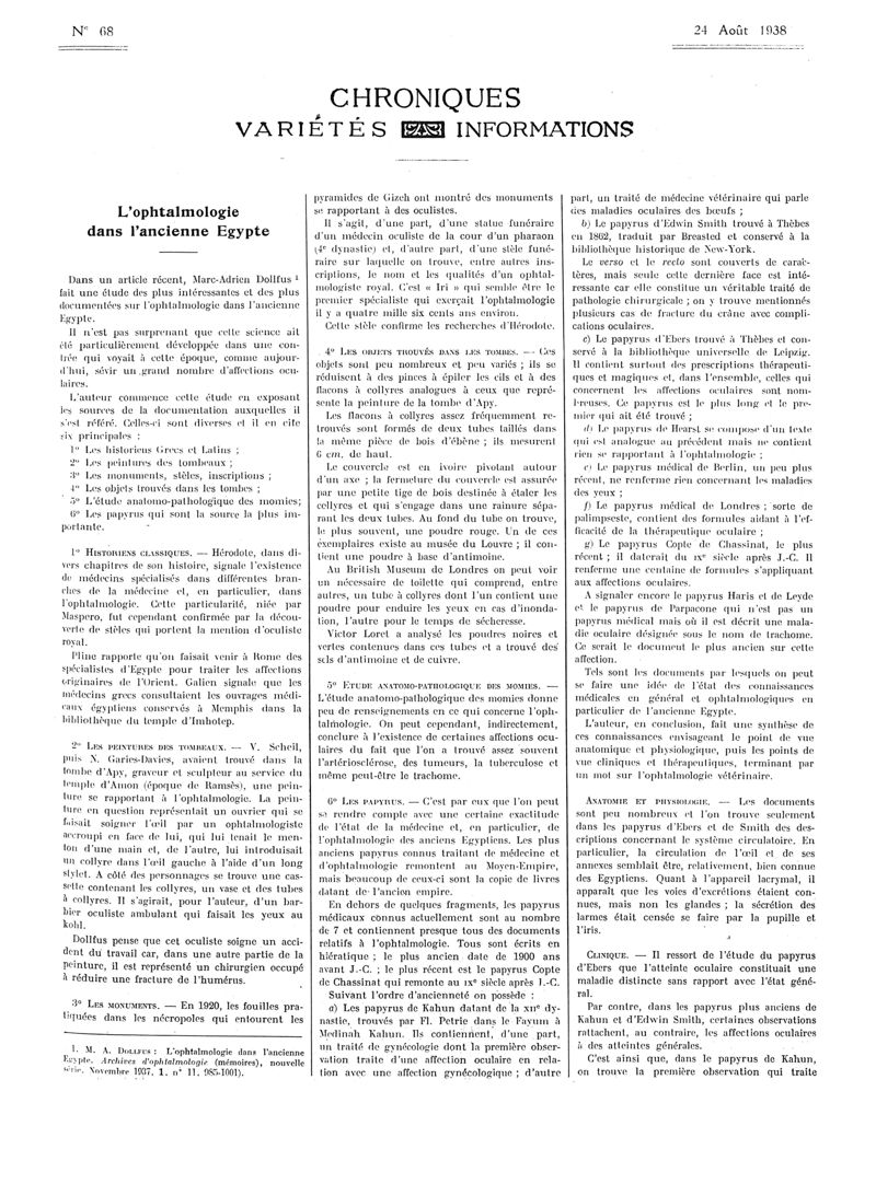 1938, Articles originaux. -