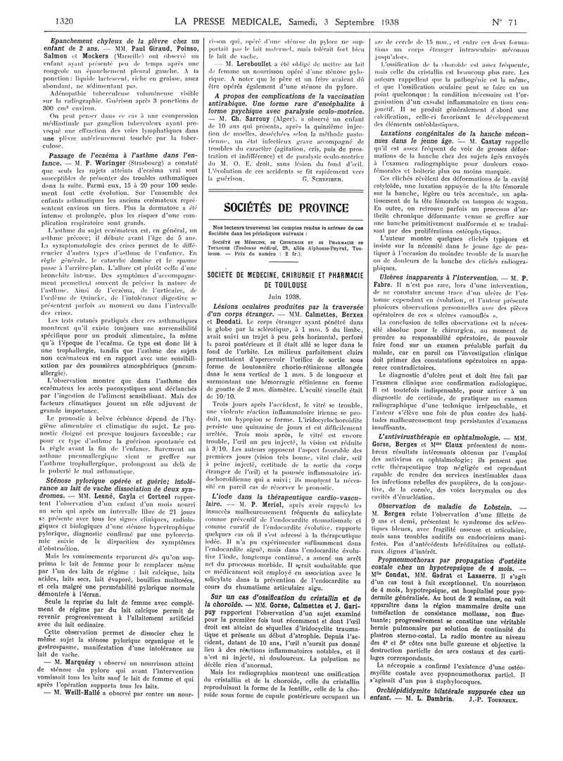 1938, Articles originaux. -