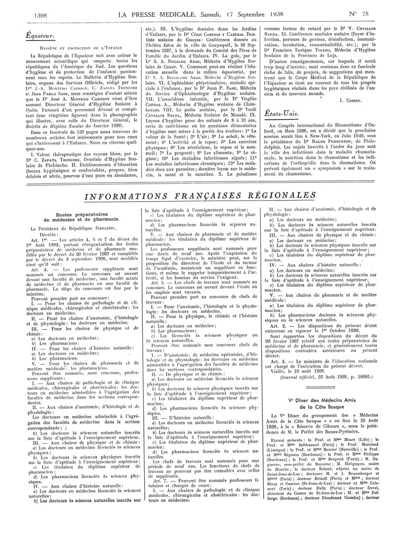 1938, Articles originaux. -