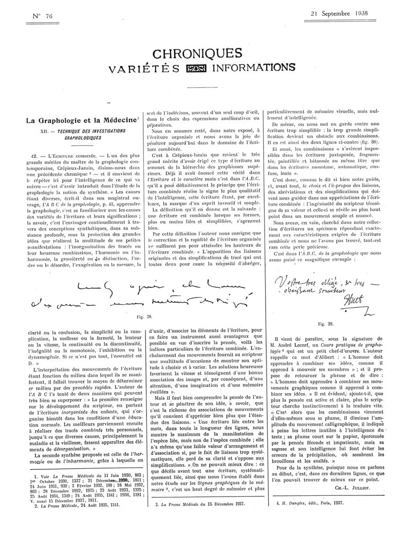 1938, Articles originaux. -