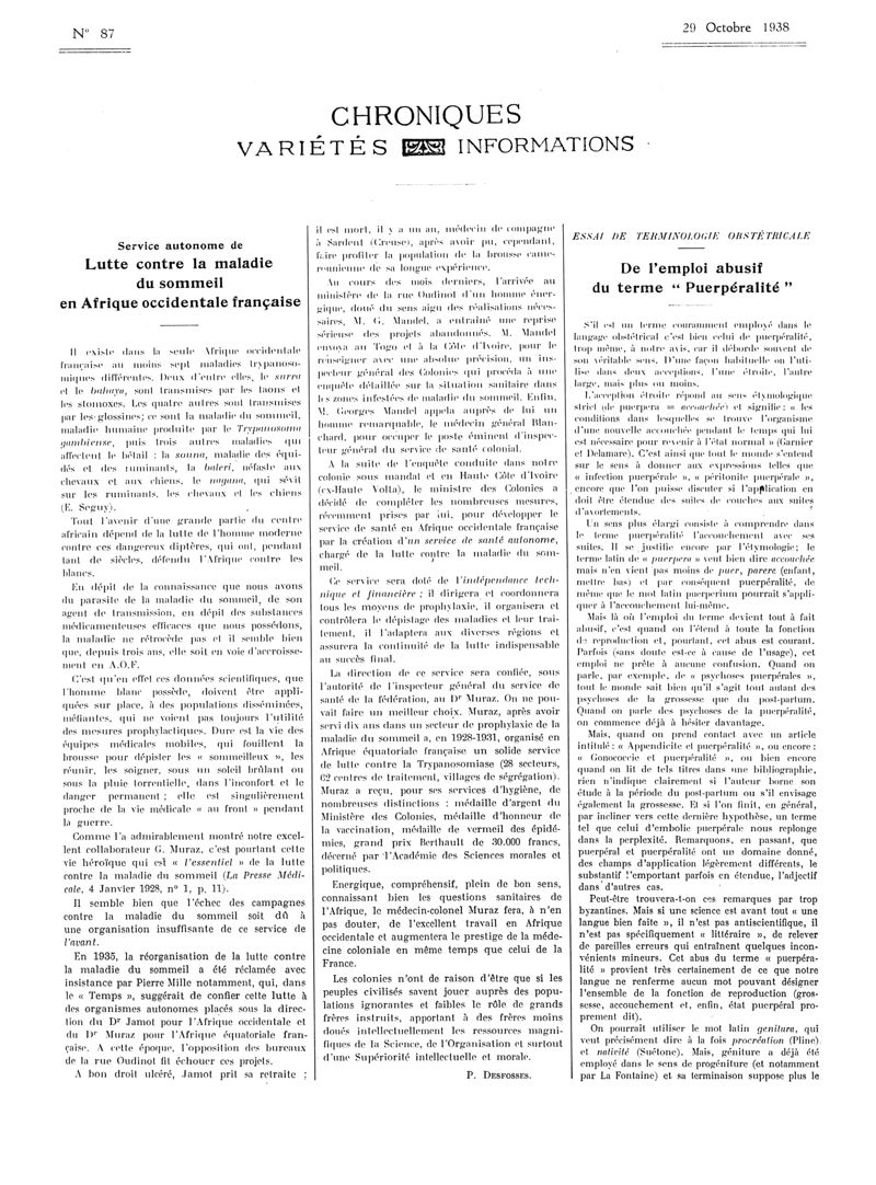 1938, Articles originaux. -