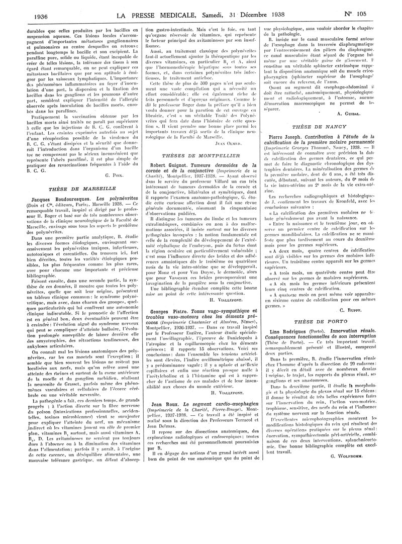 1938, Articles originaux. -