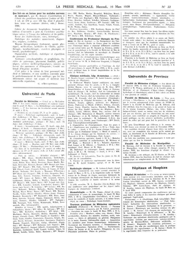 1938, Articles originaux. -