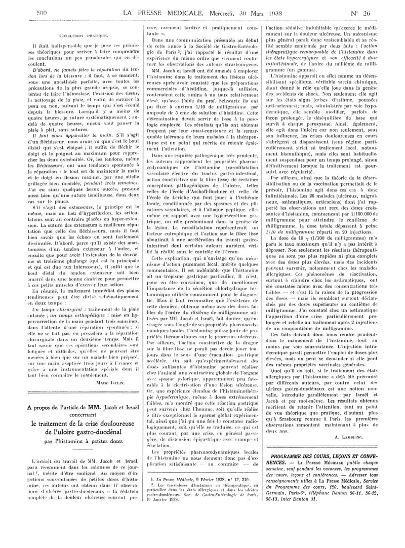 1938, Articles originaux. -