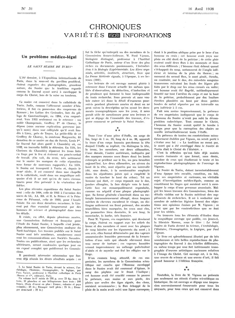 1938, Articles originaux. -