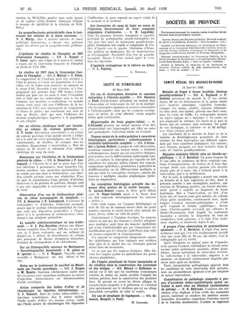 1938, Articles originaux. -