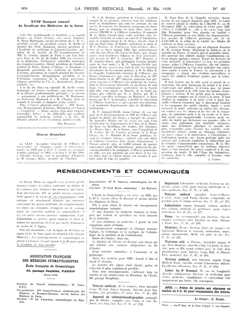 1938, Articles originaux. -