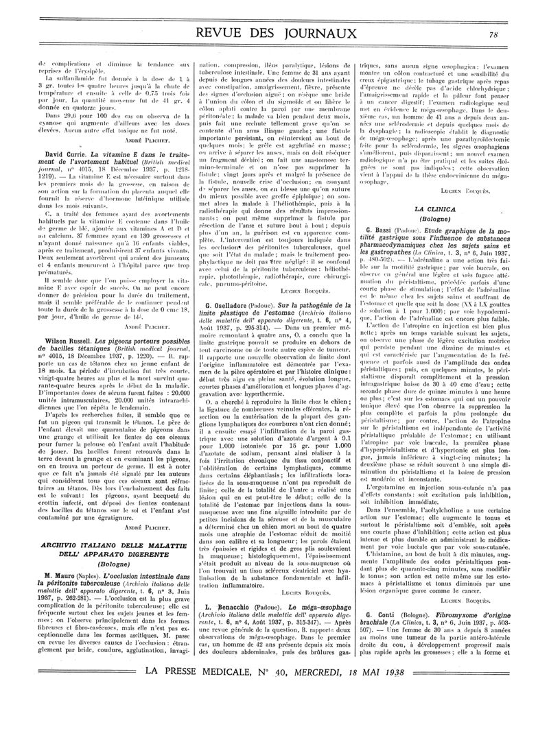 1938, Revue des journaux. -