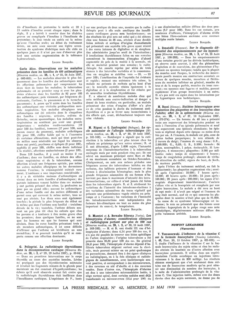 1938, Revue des journaux. -