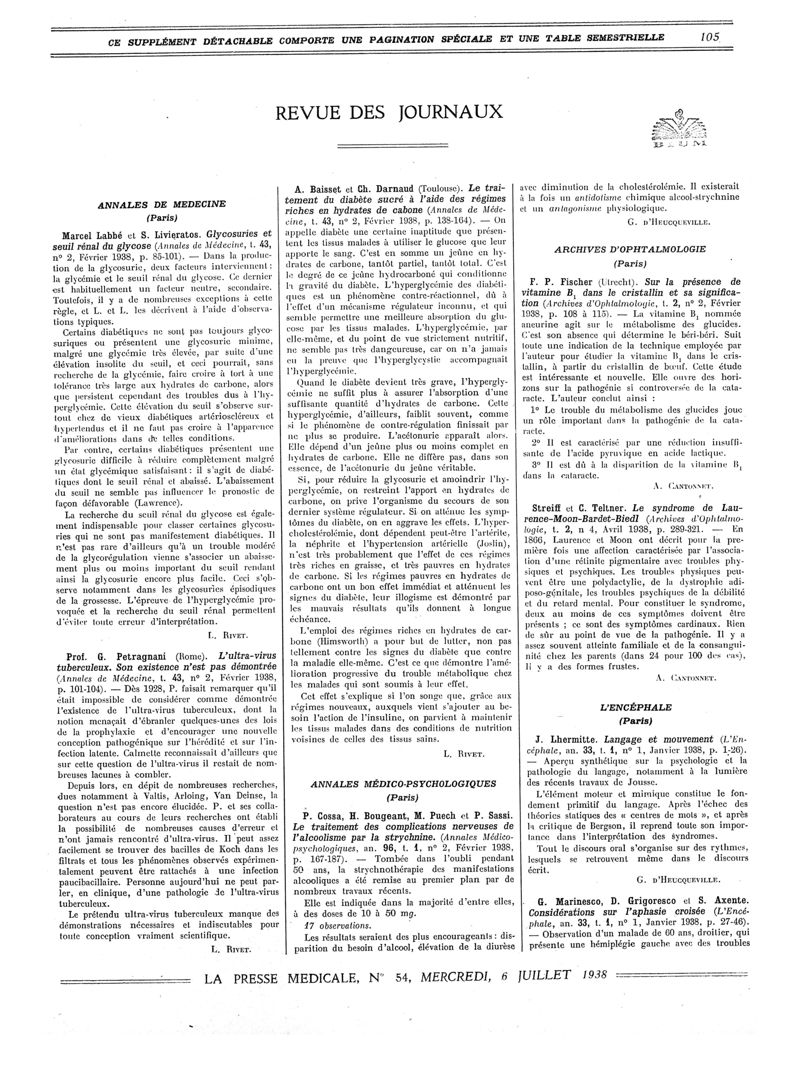1938, Revue des journaux. -