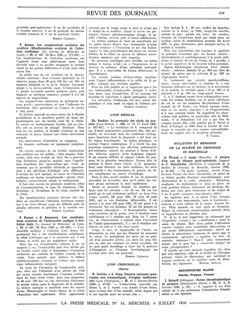1938, Revue des journaux. -